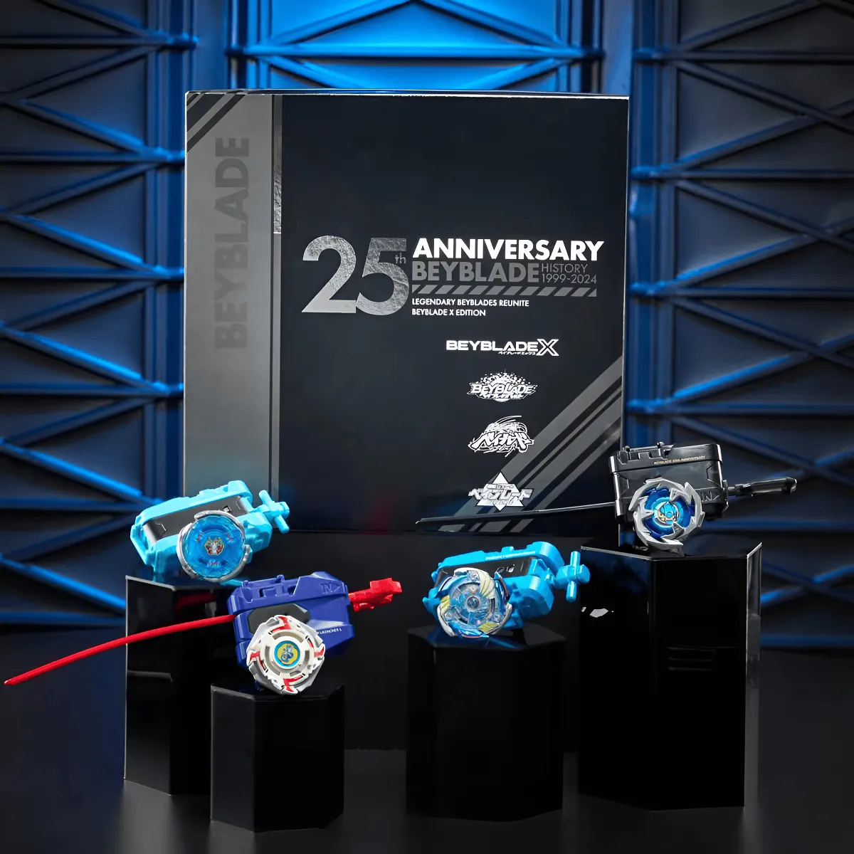 Celebra los 25 años de Beyblade con este set conmemorativo que reúne beyblades clásicos, lanzadores y accesorios exclusivos. Ideal para coleccionistas y fans que quieren revivir la batalla original.