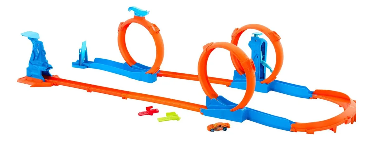 Pista De Hot Wheels Track Creator 3 En 1 Azul Naranja